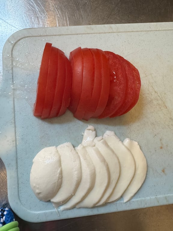 หั่นมะเขือเทศและมอสซาเรลล่าชีสสด