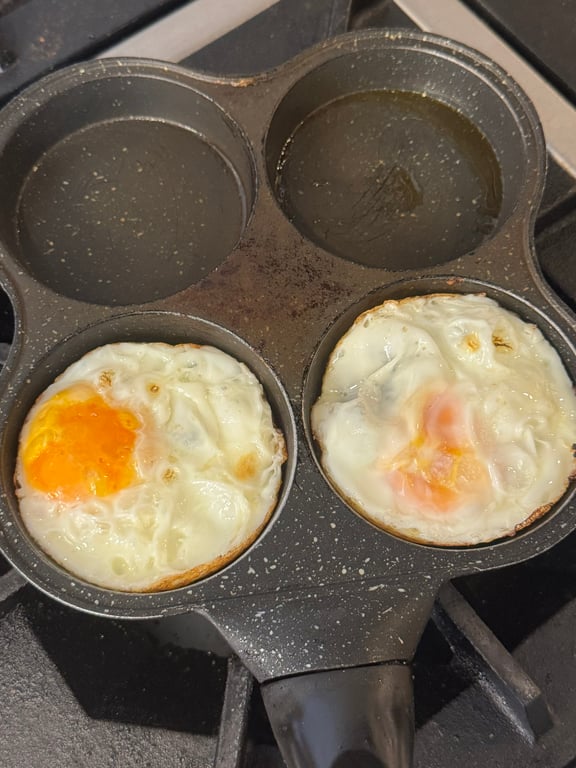 ทอดไข่ดาวสองฟอง (ใช้กระทะเทฟล่อน ไม่ใช้น้ำมัน)